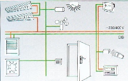 Bei EIB sind alle Sensoren z.B. Taster, Termostate usw. und Aktoren (Schaltglieder) mit einer Zweidrahtleitung verbunden und eine ungehinderte Kommunikation zwischen den einzelnen Geräten ist möglich. |